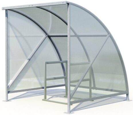 Product information: The Cycle Shelters are made with a mild steel frame and are Plate Mounted Bolt down. The Eco Cycle Shelter is very easy to assemble and is delivered as a flat pack. The shelter is lightweight yet robust, and being galvanised will give maximum protection from rust for many years. This is a full size shelter and will take up to 4 adult cycles.